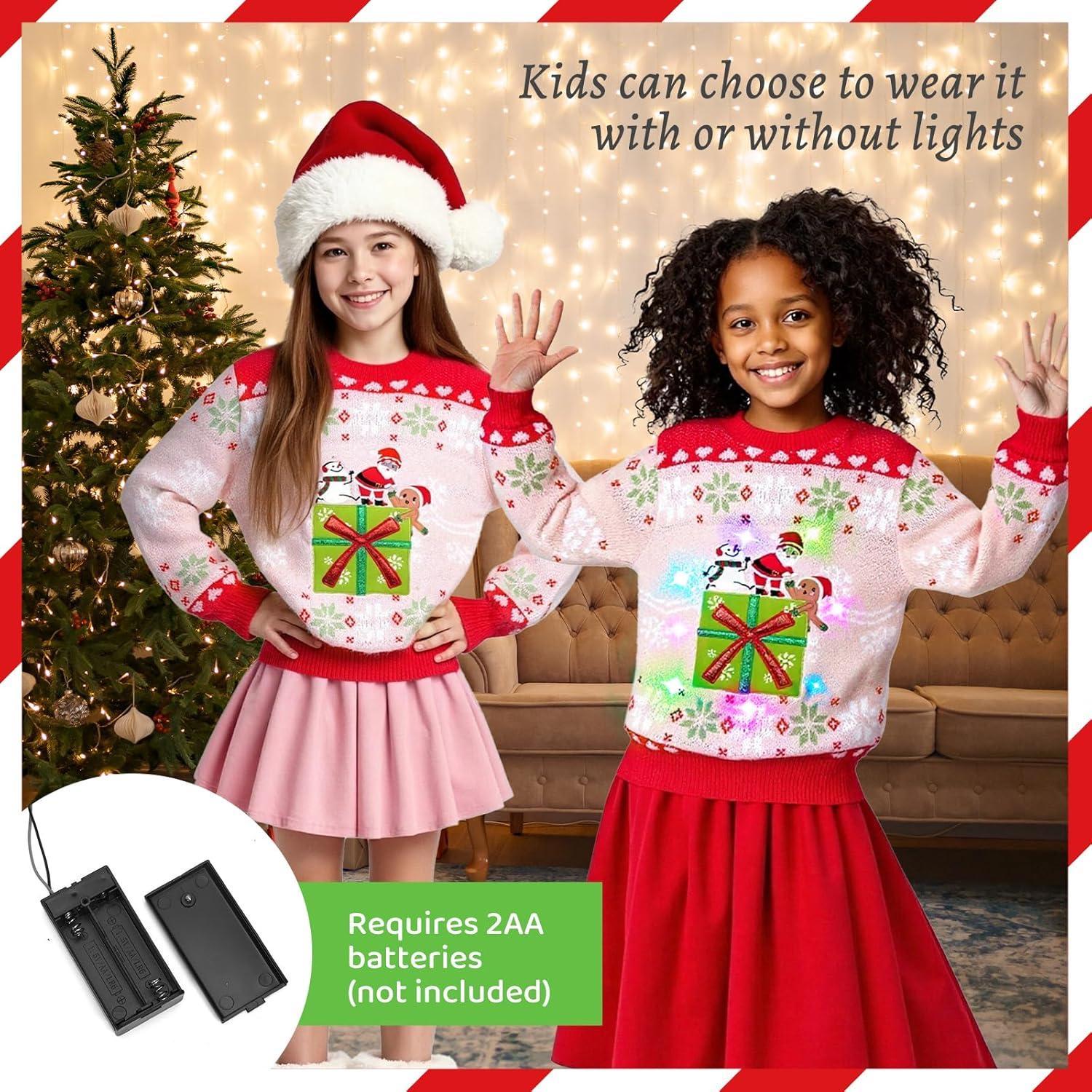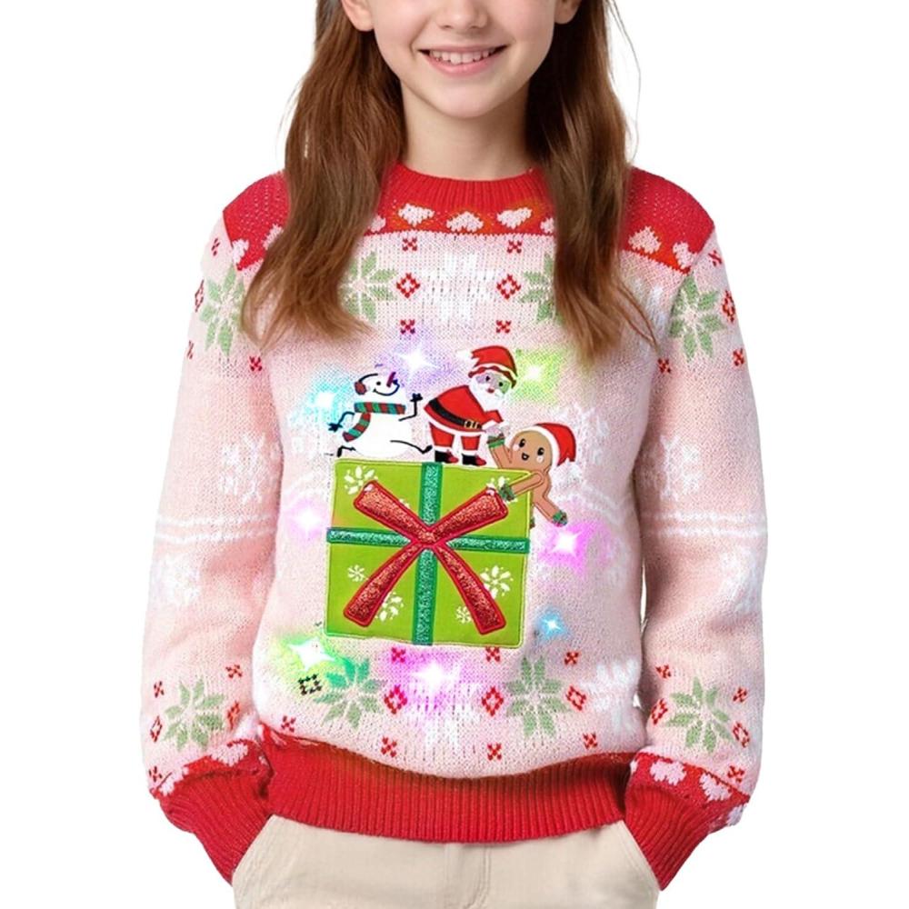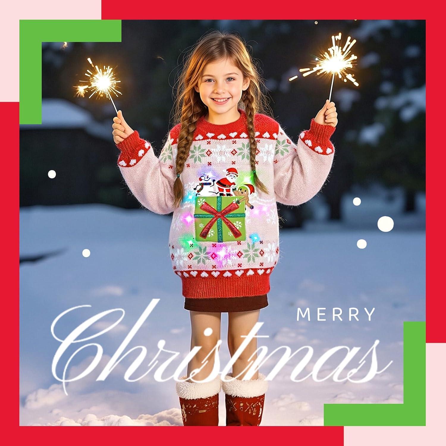 Bring the sparkle and laughter of the season to life with Meland Kids Light Up Ugly Christmas Sweater Collection — designed to make every child shine during the holidays! With five adorable designs — Rocket Santa, Rocket Reindeer, Christmas Tree Corgi, Christmas Tree Golden Retriever, and a Pink Gift Box — every boy or girl can find their favorite festive look. Whether you’re searching for a boys Christmas sweater, girls ugly Christmas sweater, or a fun kids ugly sweater for family matching photos, this collection has it all. It’s more than a sweater — it’s a holiday memory wrapped in light, laughter, and love.