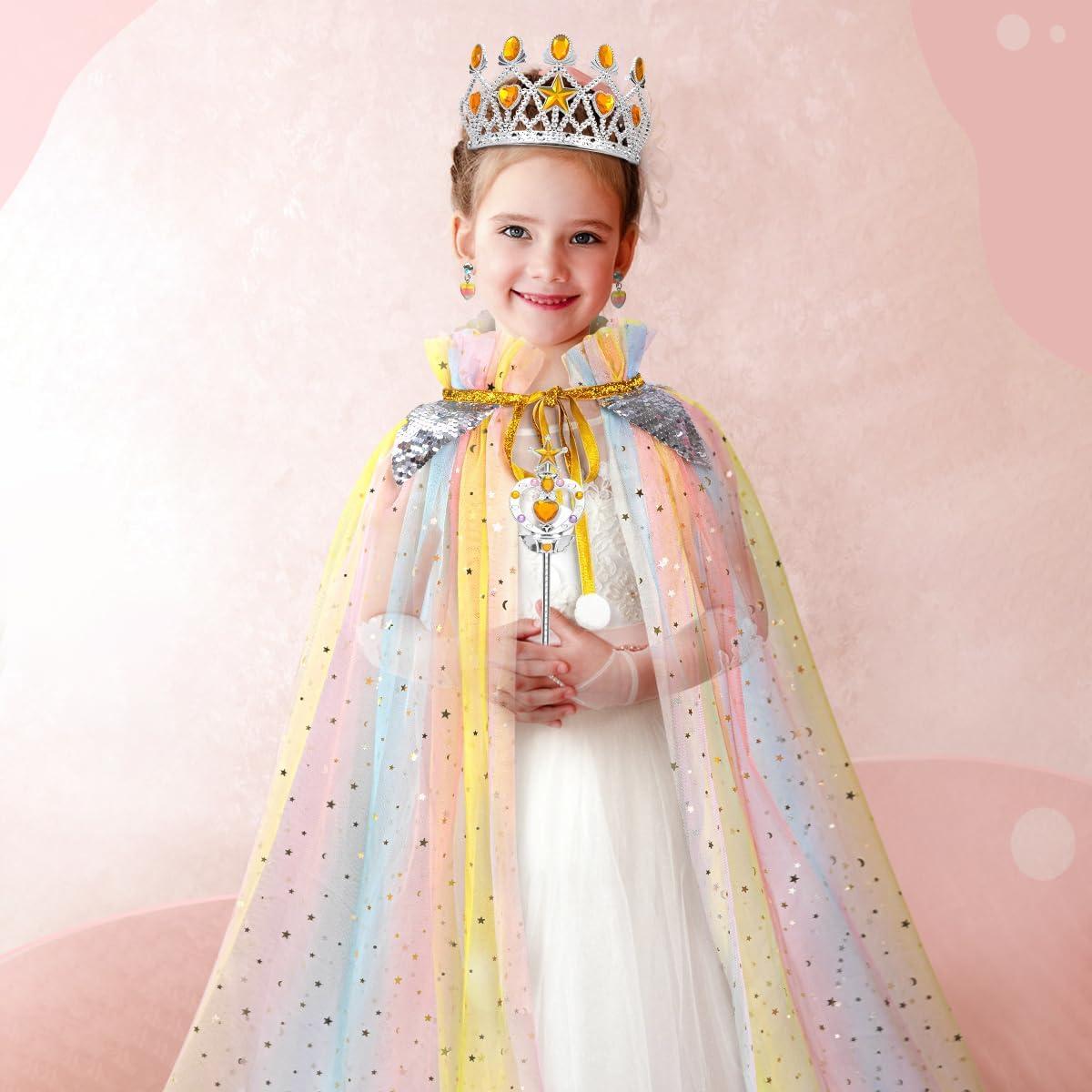 Meland Princess Dress up Clothes for Girl, 11Pcs Princess Cape with Kid Crown Toys,Dresses for Girl 3,4,5,6,7,8 Birthday Gift(Colorful)