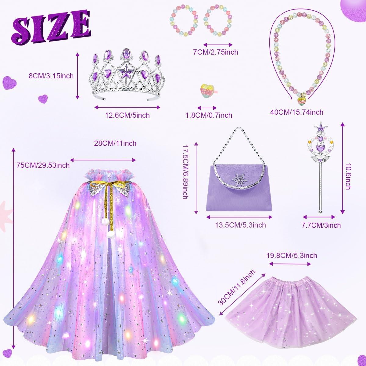Meland Princess Dress up Clothes for Girl, 11Pcs Princess Cape with Kid Crown Toys,Dresses for Girl 3,4,5,6,7,8 Birthday Gift(Purple)