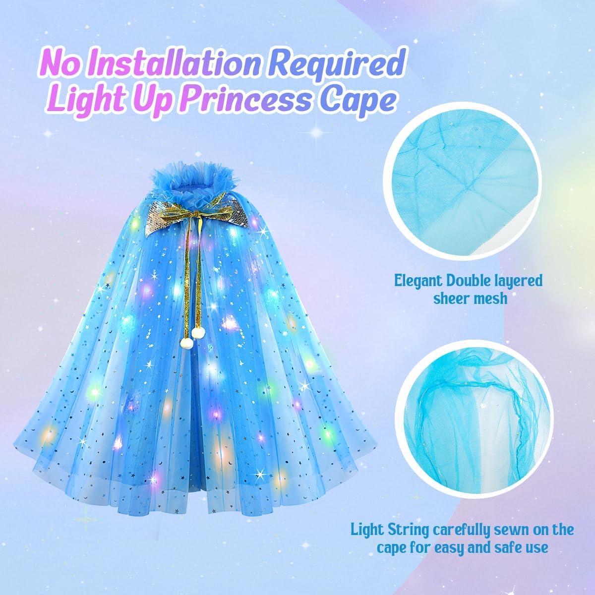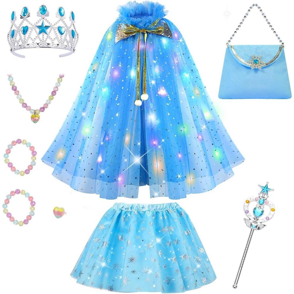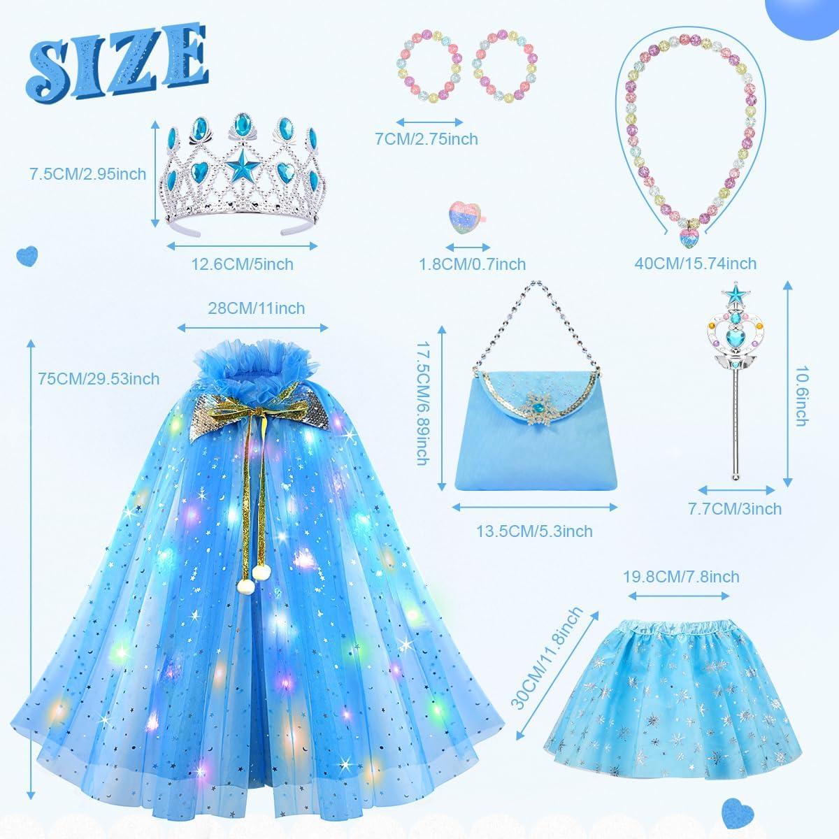 Meland Princess Dress up Clothes for Girl, 11Pcs Princess Cape with Kid Crown Toys,Dresses for Girl 3,4,5,6,7,8 Birthday Gift(Sky Blue)